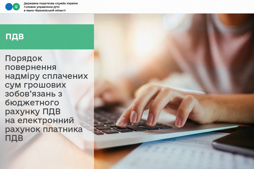 В Головному управлінні ДПС в Івано-Франківській області інформують, згідно з  пунктом 200 прим. 1.4 статті 200 прим. 1 ПКУ на рахунок у системі електронного адміністрування ПДВ платника зараховуються кошти, зокрема, з бюджету в сумах надміру сплачених грошових зобов’язань з ПДВ, повернутих платнику податків у порядку, встановленому пунктом 43.4 прим. 1 статті 43 ПКУ.