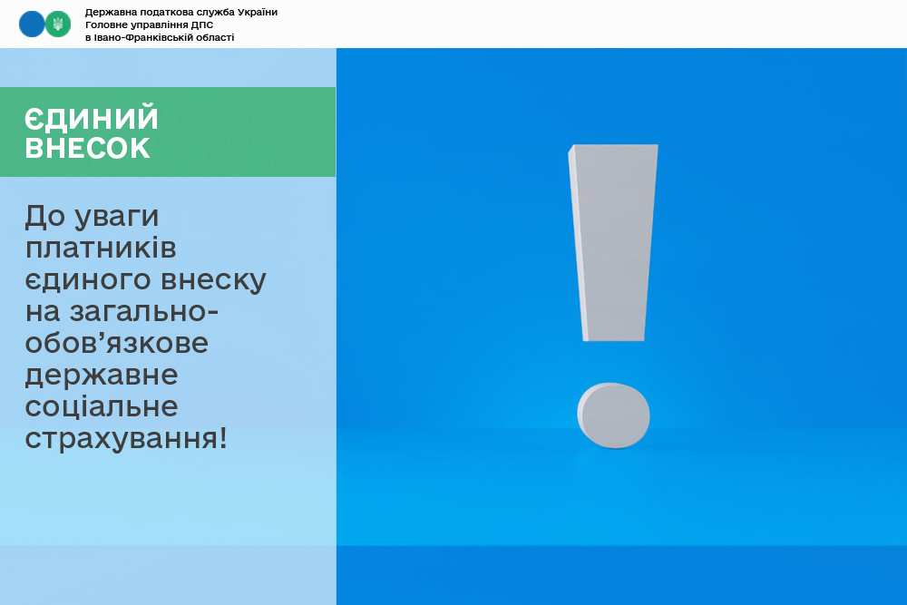 До уваги платників єдиного внеску на загальнообов’язкове державне соціальне страхування!