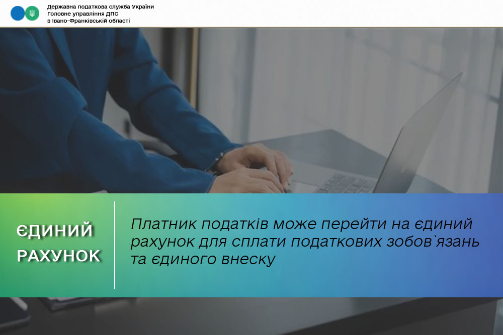 В Головному управлінні ДПС в Івано-Франківській області нагадують платникам податків про можливість використання єдиного рахунку для сплати сплати податків та зборів та єдиного внеску.