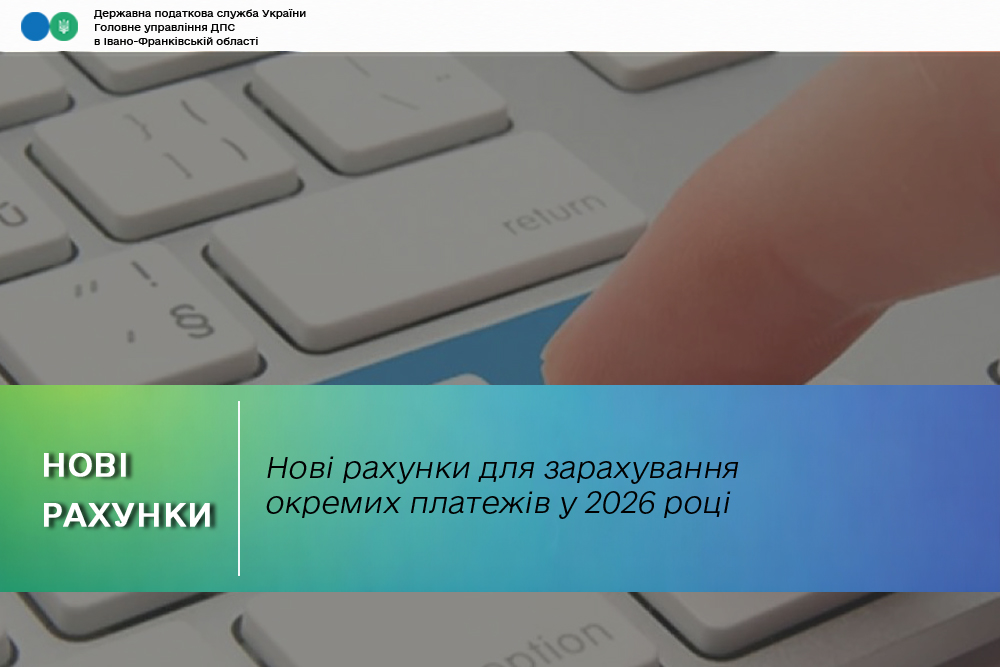 Актуальні реквізити рахунків для сплати податкових платежів з 2026 року розміщені на вебпорталі Головного управління ДПС в Івано-Франківській області у розділі «Рахунки для сплати платежів».