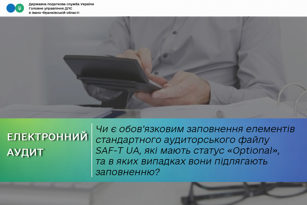 Необов’язкові елементи («Optional»), які не передбачені в Порядку, заповнюються у разі, якщо суб’єкт господарювання вважає, що у зв’язку зі специфікою ведення бухгалтерського обліку та/або особливостями роботи автоматизованого програмного забезпечення, яке використовується суб’єктом господарювання, доцільно внести додаткові елементи обліку та дані, які забезпечать більш повне та достовірне відображення інформації щодо обліку доходів, витрат, фінансового результату та інших показників, пов’язаних із визначенням об’єктів оподаткування, повнотою та своєчасністю сплати податків.
