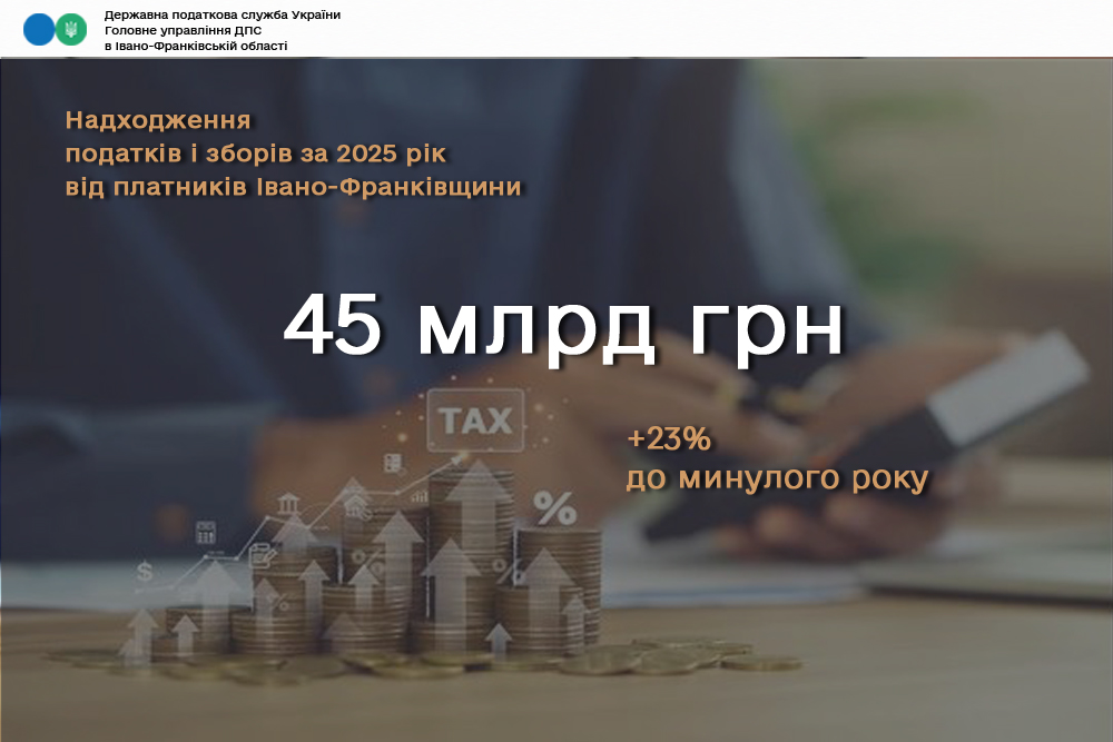 Надходження податків та зборів від платників Прикарпаття за минулий рік склали 45 мільярдів гривень