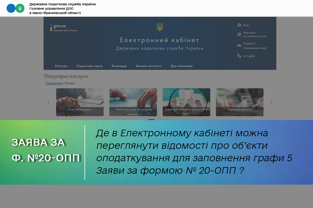 Де в Електронному кабінеті для заповнення графи 5 Заяви за формою № 20-ОПП можна переглянути відомості про об’єкти оподаткування?