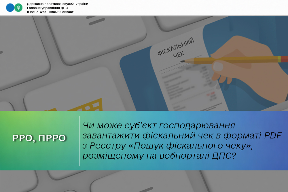 - Чи може суб’єкт господарювання завантажити фіскальний чек в форматі PDF з Реєстру «Пошук фіскального чеку», розміщеному на вебпорталі ДПС?