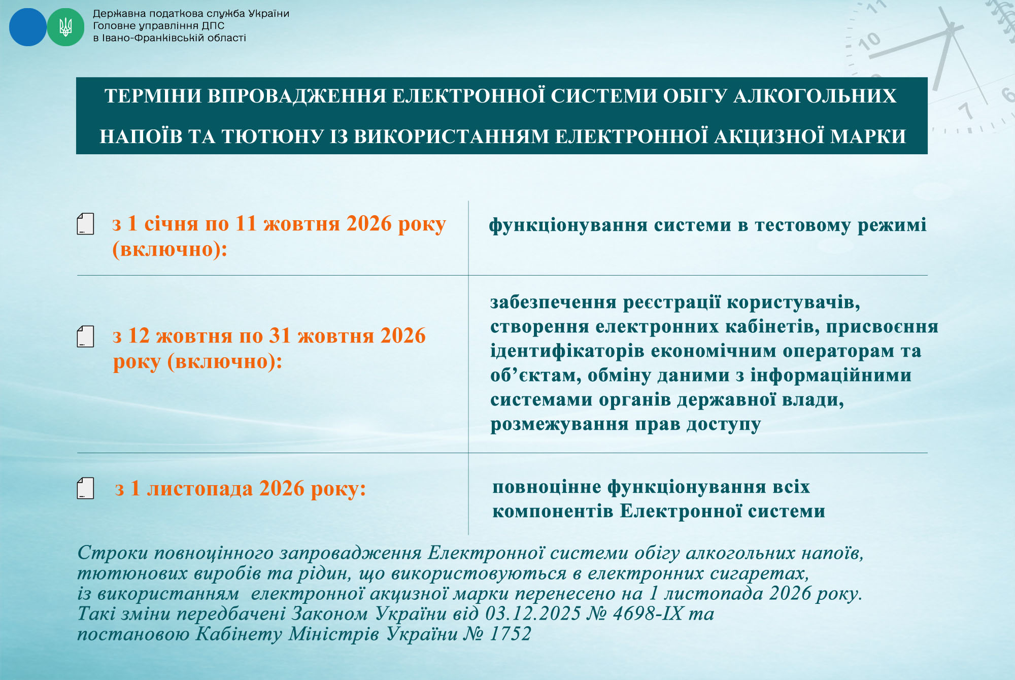 Терміни впровадження електронної системи обігу алкогольних напоїв та тютюну із використанням електронної акцизної марки