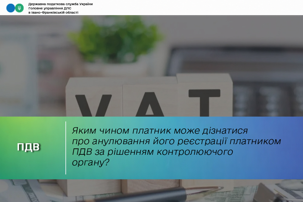 Відповідно до п. 184.1 ст. 184 Податкового кодексу України реєстрація платника ПДВ діє до дати анулювання реєстрації платника податку, яка проводиться шляхом виключення з реєстру платників податку і відбувається у відповідних випадках. Про це інформують в Головному управлінні ДПС в Івано-Франківській області.