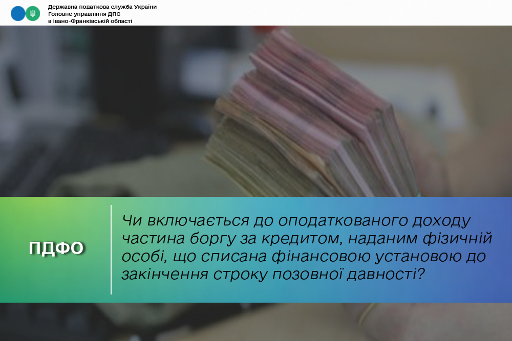 Чи включається до оподаткованого доходу частина боргу за кредитом, наданим фізичній особі, що списана фінансовою установою до закінчення строку позовної давності?