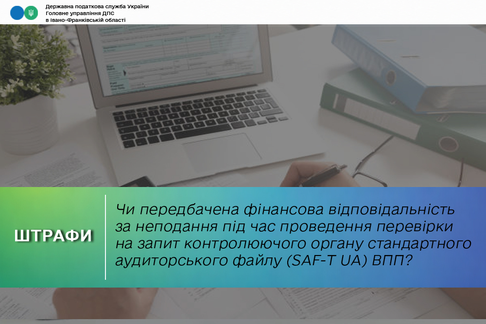 З огляду на те, що файл SAF-T UA має статус електронного документа (інформації) на сьогодні, у ПКУ окремого виду фінансової відповідальності виключно за неподання або подання не в повному обсязі платником податків файлу SAF-T UA на запит контролюючого органу не передбачено.