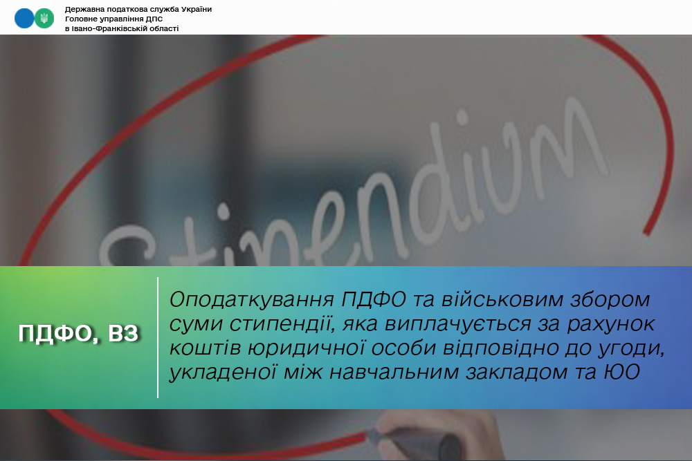 Оподаткування ПДФО та військовим збором суми стипендії, яка виплачується за рахунок коштів юридичної особи відповідно до угоди, укладеної між навчальним закладом та ЮО?