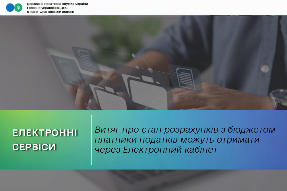 В Головному управлінні ДПС в Івано-Франківській області нагадують платникам податків, що Витяг про стан розрахунків з бюджетом можна отримати в електронному вигляді через Електронний кабінет.