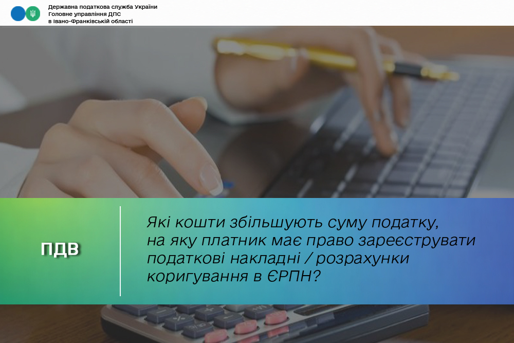 Відповідно до п. 200 прим. 1.3 ст. 200 прим. 1 Податкового кодексу України складовою формули щодо суми податку, на яку платник має право зареєструвати податкові накладні та/або розрахунки коригування в Єдиному реєстрі податкових накладних є загальна сума поповнення, зокрема, з рахунку у банку/небанківського надавача платіжних послуг платника податку рахунка в системі електронного адміністрування податку (SПопРах). Про це повідомляють в Головному управлінні ДПС в Івано-Франківській області.