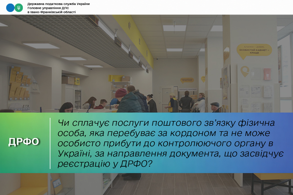 Чи сплачує послуги поштового зв’язку фізична особа, яка перебуває за кордоном та не може особисто прибути до контролюючого органу в Україні, за направлення документа, що засвідчує реєстрацію у ДРФО?