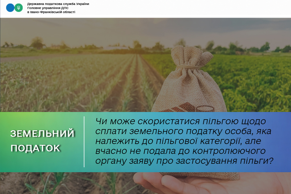 Чи може скористатися пільгою щодо сплати земельного податку ФО, яка належить до пільгової категорії, але вчасно не подала до контролюючого органу заяву про застосування пільги та документ, що посвідчує її право на пільгу?