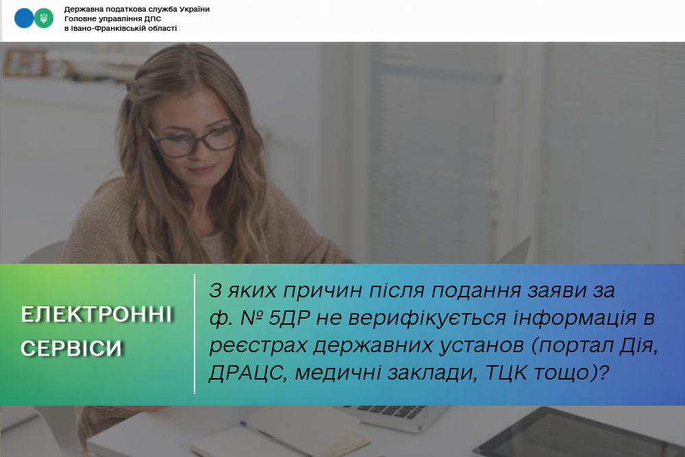З яких причин після подання заяви за ф. № 5ДР про оновлення даних в ДРФО не верифікується інформація в реєстрах державних установ (портал Дія, ДРАЦС, медичні заклади, ТЦК, тощо) та куди в таких випадках звертатись фізичній особі?