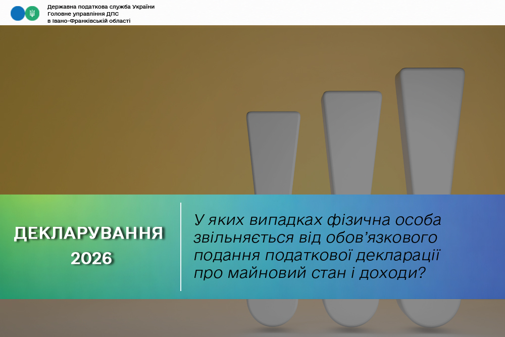 В Головному управлінні ДПС в Івано-Франківській області інформують, що згідно з п. 179.4 ст. 179 Податкового кодексу України платники податку звільняються від обов’язку подання податкової декларації про майновий стан і доходи в таких випадках: