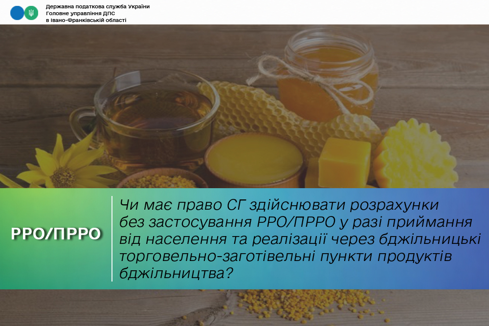 Чи має право СГ здійснювати розрахунки без застосування РРО/ПРРО у разі приймання від населення та реалізації через бджільницькі торговельно-заготівельні пункти продуктів бджільництва, обладнання та інвентарю для пасічників?