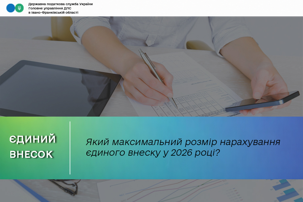В Головному управлінні ДПС в Івано-Франківській області нагадують, що статтею 32 Закону України від 03 грудня 2025 року № 4695-IX «Про Державний бюджет України на 2026 рік» установлено, розмір максимальної величини бази нарахування єдиного внесок на загальнообов’язкове державне соціальне страхування – максимальної суми доходу застрахованої особи на місяць, на яку нараховується єдиний внесок, визначеної Законом України від 08 липня 2010 року № 2464-VI «Про збір та облік єдиного внеску на загальнообов’язкове державне соціальне страхування» 2026 році. Зокрема: