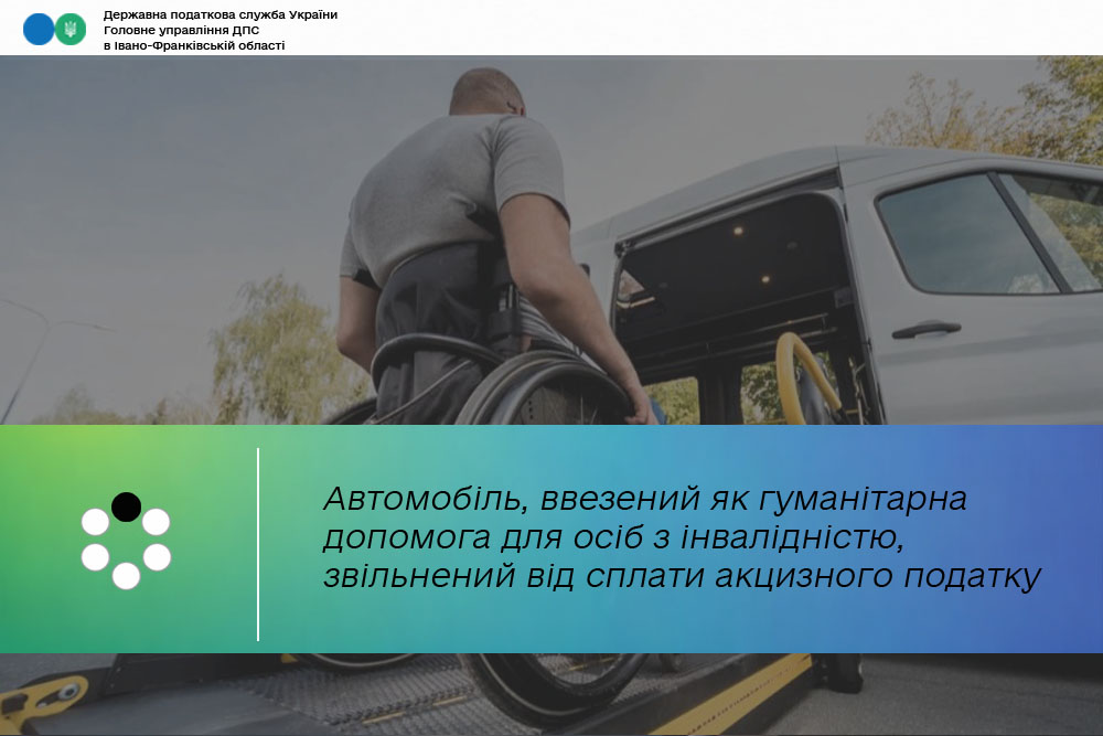 Отже, якщо автомобіль, обладнаний для перевезення осіб з інвалідністю з ураженням опорно-рухового апарату, визнано гуманітарною допомогою відповідно до Закону № 1192-XIV, його ввезення на митну територію України не оподатковується акцизним податком.