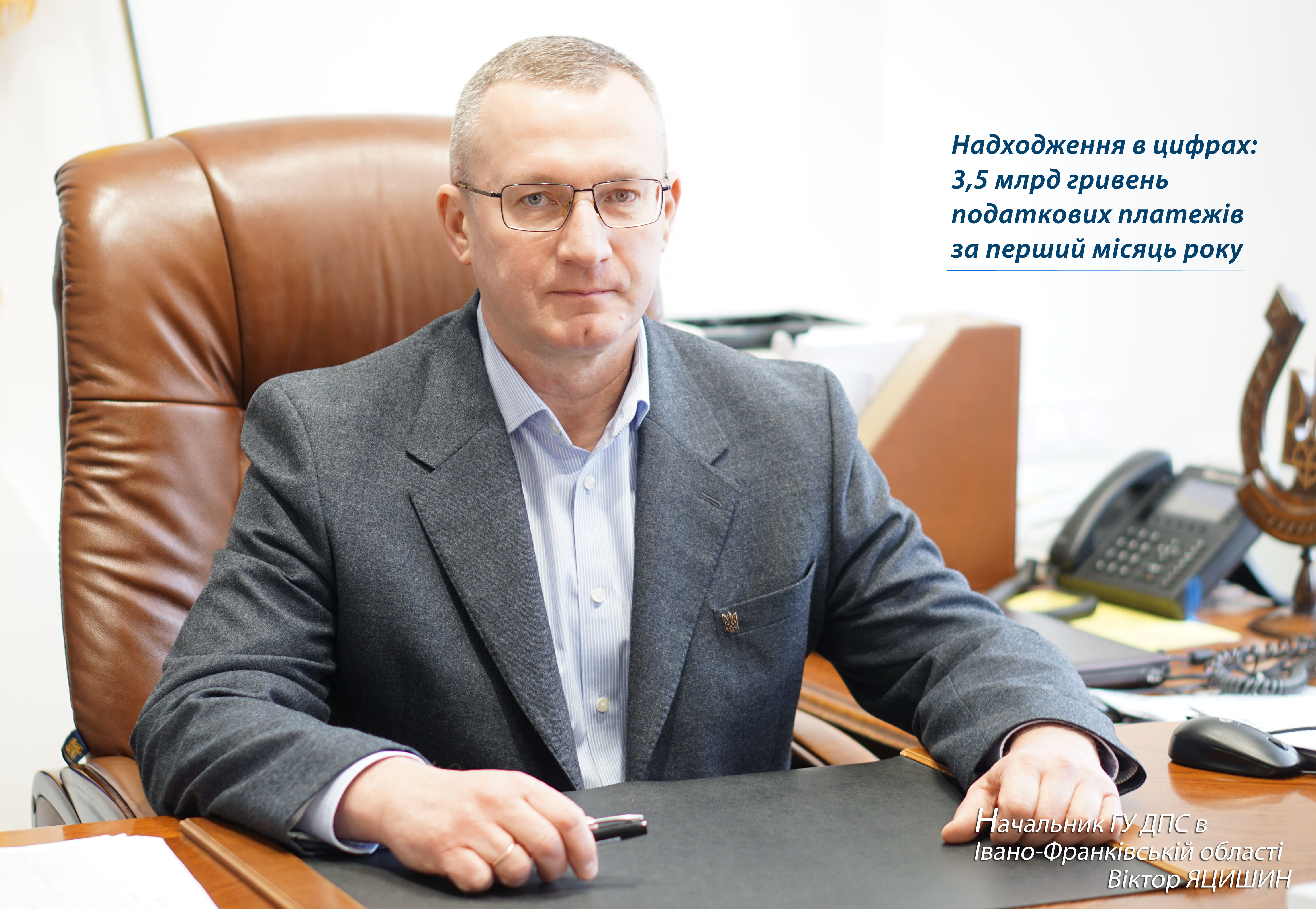 Підбиваючи підсумки першого місяця бюджетного року, Віктор Яцишин зазначає, що планові завдання в частині наповнення бюджету – виконані. Це результат відповідальної співпраці податкової служби та платників податків. «Завдяки відповідальній позиції обох сторін та усвідомленні спільного обов’язку перед державою вдалося забезпечити стабільні надходження до бюджету. Дякую кожному за його внесок у фінансову стійкість держави, дякую ЗСУ за можливість працювати», - завершив Віктор Яцишин.