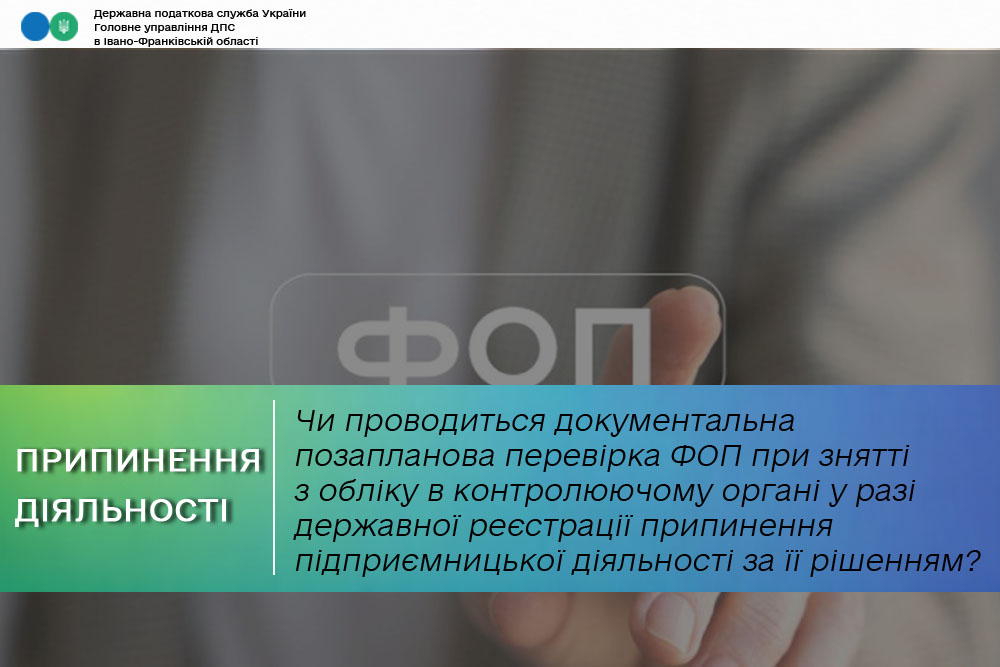 Чи проводиться документальна позапланова перевірка ФО при знятті з обліку в контролюючому органі у разі державної реєстрації припинення підприємницької діяльності за її рішенням?
