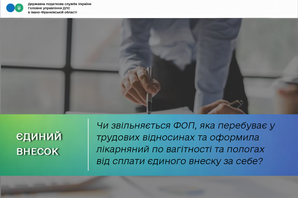 Враховуючи викладене, за місяці звітного періоду, за які роботодавцем сплачено єдиний внесок, зокрема нарахований на суму допомоги у зв’язку з вагітністю та пологами при оформленні відпустки у зв’язку з вагітністю та пологами, у розмірі не менше мінімального страхового внеску, фізична особа – підприємець звільняється від сплати за себе єдиного внеску. Водночас, якщо за окремі періоди, на які припадає відпустка у зв’язку з вагітністю та пологами, роботодавцем сплачено єдиний внесок у розмірі менше мінімального страхового внеску, то за такі періоди фізична особа – підприємець здійснює сплату єдиного внеску самостійно на загальних підставах.