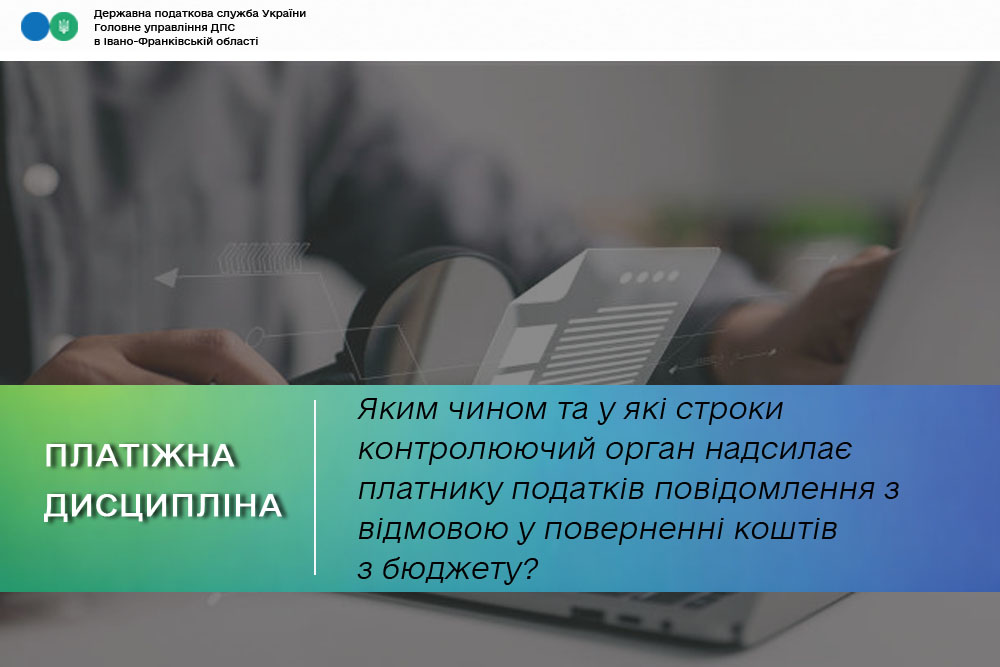 Отже, якщо правомірність повернення коштів не встановлено, то незалежно від способу подання платником податків Заяви (в електронній формі через Електронний кабінет або в паперовому вигляді), такому платнику надсилається повідомлення з відмовою у поверненні коштів з бюджету із зазначенням причини такої відмови поштою одним з підрозділів територіального органу ДПС, що виконує функції з: