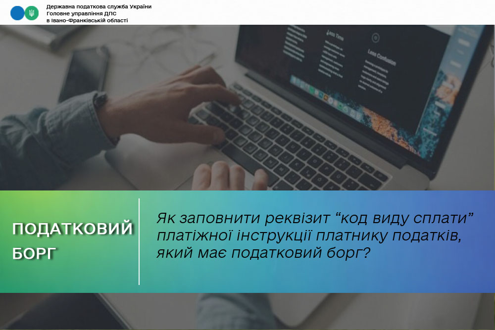 Платники податків, які мають податковий борг або заборгованість з єдиного внеску, при заповненні реквізитів розрахункового документа у полі «Призначення платежу» мають зазначати код виду сплати «140» – сплата коштів у рахунок погашення податкового боргу/заборгованості з єдиного внеску.