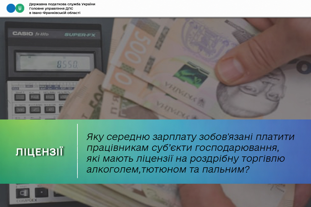 Суб’єкти господарювання, які мають ліцензії на роздрібну торгівлю алкоголем, тютюновими виробами, рідинами для електронних сигарет чи пальним, повинні забезпечити працівникам середню зарплату не нижчу за дві мінімальні зарплати або півтори мінімальні зарплати – при дотриманні певних умов. Про це нагадують в Головному управлінні ДПС в Івано-Франківській області.