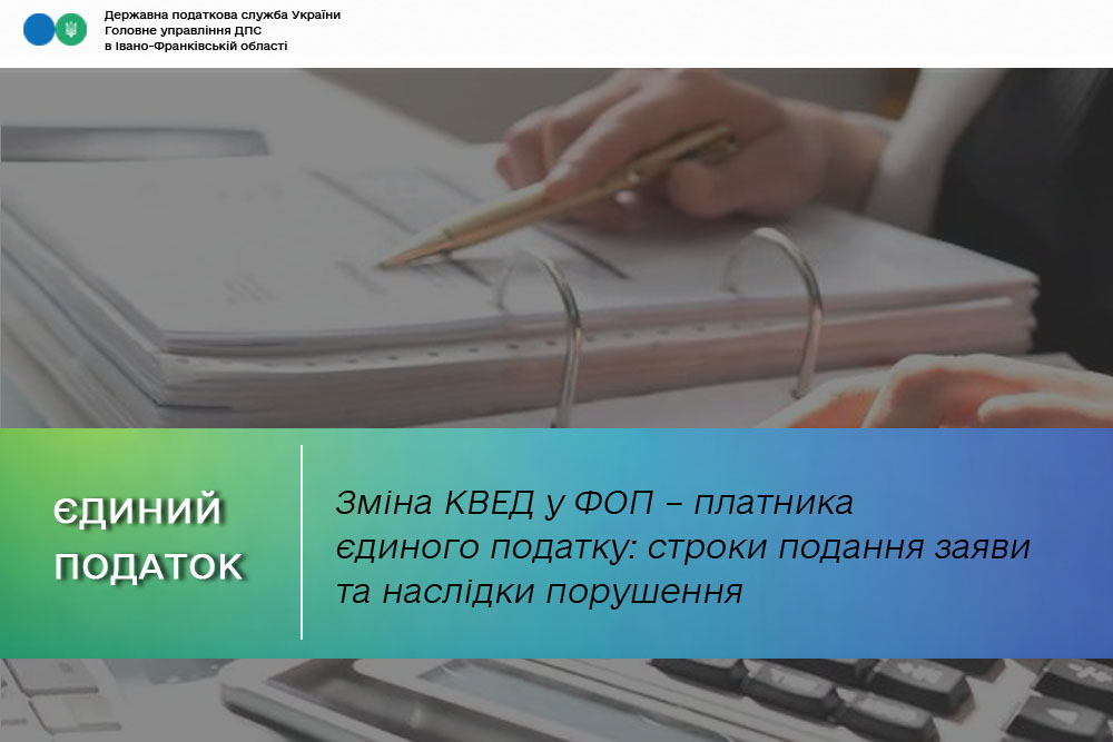 Враховуючи зазначене та для забезпечення відображення у реєстрі платників єдиного податку достовірної інформації про види господарської діяльності, фізична особа – підприємець – платник єдиного податку третьої групи у разі зміни видів господарської діяльності протягом податкового (звітного) періоду повинна подати заяву про внесення змін до реєстру платників єдиного податку не пізніше останнього дня кварталу, в якому відбулися такі зміни.