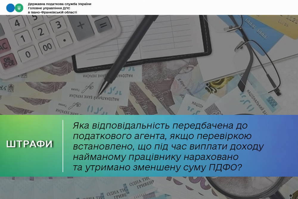Яка відповідальність передбачена до податкового агента, якщо перевіркою встановлено, що під час виплати доходу (авансу) найманому працівнику нараховано та утримано зменшену суму ПДФО?