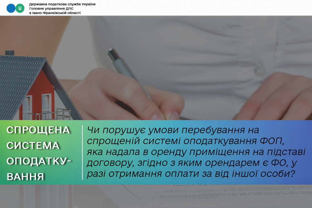 Чи порушує умови перебування на спрощеній системі оподаткування ФОП – платник ЄП (другої або третьої групи), яка надала в оренду приміщення на підставі договору, згідно з яким орендарем є ФО (громадянин), у разі отримання оплати за оренду від іншої особи?
