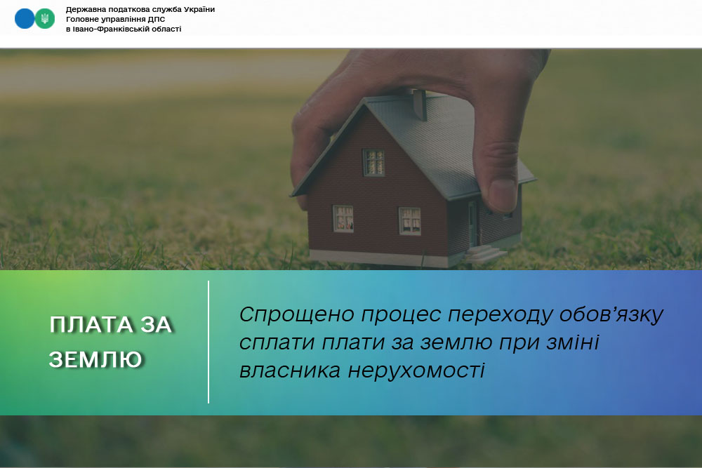 В Головному управлінні ДПС в Івано-Франківській області нагадують, що з 01 жовтня 2025 року спрощено порядок справляння плати за землю у разі зміни власника.