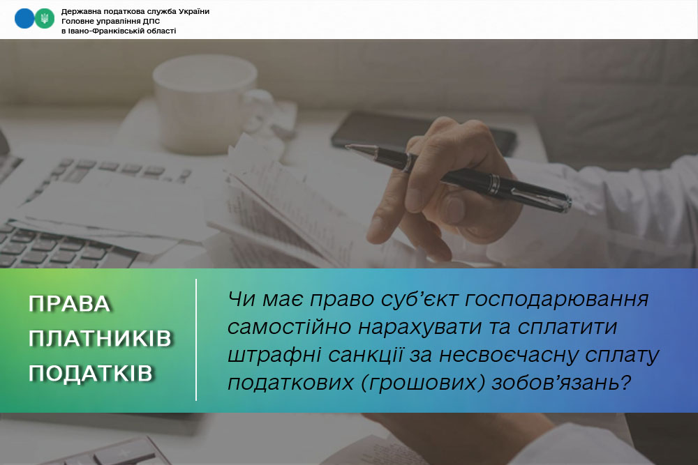 Водночас, самостійне нарахування та сплата штрафних санкцій за затримку термінів сплати грошових зобов’язань платником податків ПКУ не передбачено.