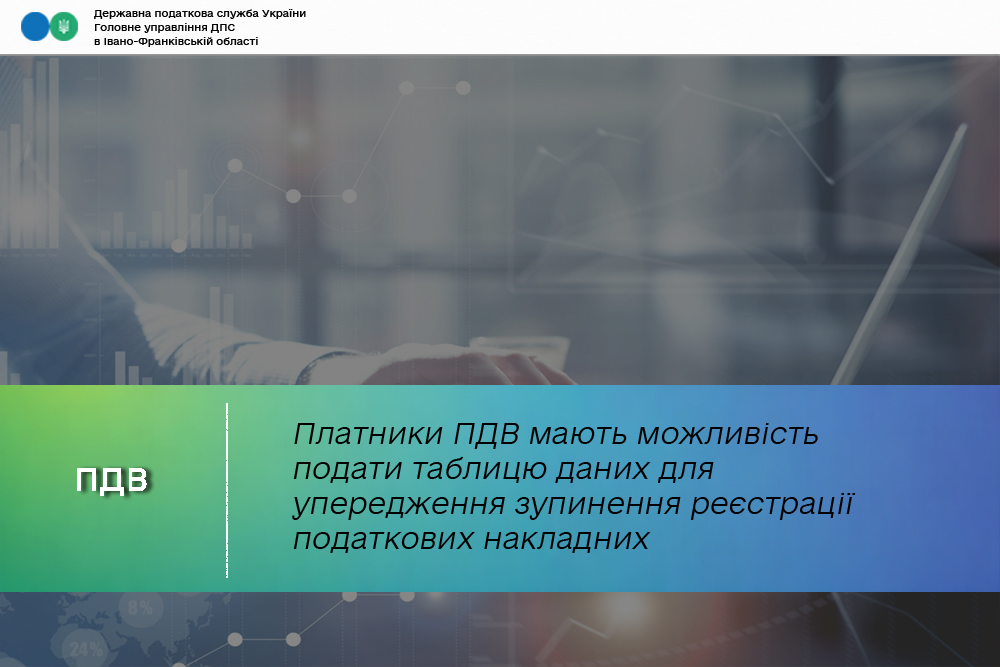 З метою забезпечення безперебійної реєстрації податкових накладних та розрахунків коригування в ЄРПН, платники податку на додану вартість мають можливість подати таблицю даних платника податку. Про це нагадують в Головному управлінні ДПС в Івано-Франківській області.