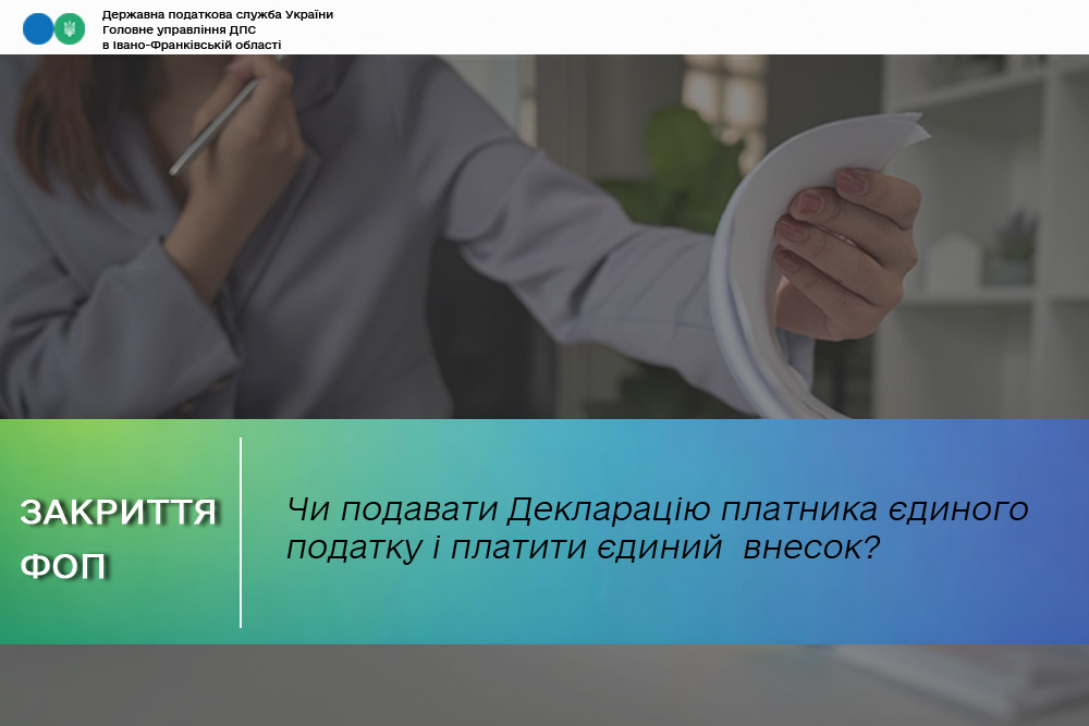 Чи звільняються ФОП – платники єдиного податку першої – третьої груп, щодо яких до ЄДР внесено запис про припинення підприємницької діяльності, від обов’язку подання податкової Декларації платника єдиного податку разом з додатком 1 у разі відсутності доходу та звільнення від сплати ЄСВ?