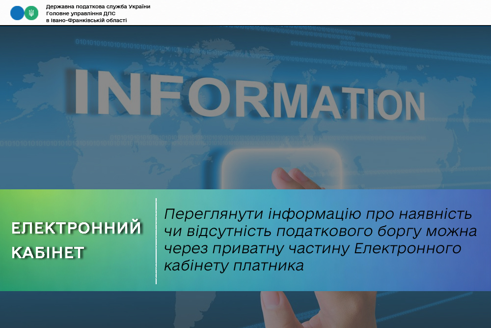 Ви можете отримати інформацію про наявність чи відсутність податкового боргу через приватну частину Електронного кабінету платника податків (https://cabinet.tax.gov.ua).