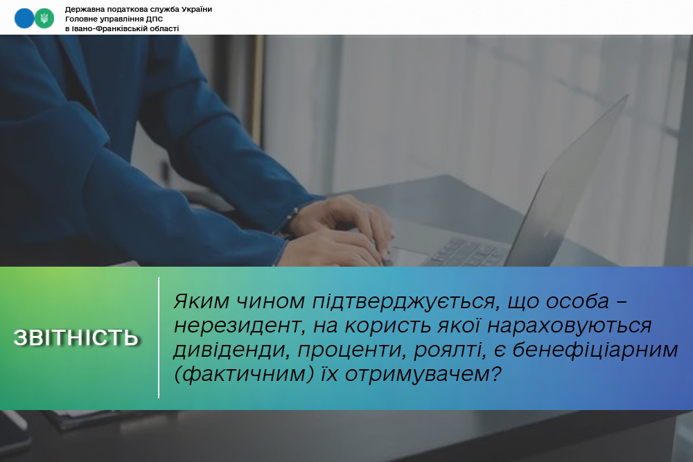 Таким чином підтвердити, що особа – нерезидент, на користь якої нараховуються дивіденди, проценти, роялті, є бенефіціарним (фактичним) їх отримувачем (власником) згідно вимог ст. 103 ПКУ та п.п. 140.5.7 п. 140.5 ст. 140 ПКУ можна шляхом надання заяви у довільній формі про наявність у такого нерезидента статусу бенефіціарного (фактичного) отримувача (власника) доходу та будь-яких документів, які підтверджують фактичне право особи на такі доходи (зокрема, але не виключно, ліцензії, договори, офіційні листи компетентних органів, тощо).
