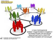 Водночас така неприбуткова організація виключається контролюючим органом з Реєстру та вважається платником податку на прибуток для цілей оподаткування з першого дня місяця, наступного за місяцем, у якому вчинено таке порушення.