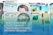 Перелік кодів видів сплати у реквізиті «Призначення платежу» платіжної інструкції