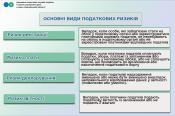 - ризик сплати – випадок, коли платники податків сплачують податки, збори, платежі із запізненням або сплачують у неповному обсязі, або не сплачують зовсім, що призводить до виникнення або накопичення податкового боргу;