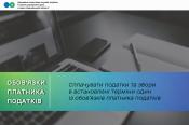 В Головному управлінні ДПС в Івано-Франківській області нагадують, що обов’язки платника податків визначені ст. 16 Податкового кодексу України. Зокрема, відповідно до п. 16.1 ст. 16 Податкового кодексу платник податків зобов’язаний - сплачувати податки та збори в строки та у розмірах, встановлених нормами Податкового кодексу та законами з питань митної справи.